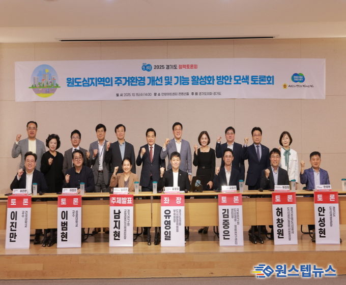 원스텝뉴스 이병희 기자 | 경기도의회 도시환경위원회 유영일 부위원장(국민의힘, 안양5)이 좌장을 맡은 '원도심지역의 주거환경 개선 및 기능 활성화 방안 모색 토론회'가 10월 15일 안양아트센터 컨벤션홀에서 개최됐다. 이번 토론회는 경기도와 경기도의회가 공동으로 주최하는 ‘2025 경기도 정책토론회’의 일환으로 개최됐다.