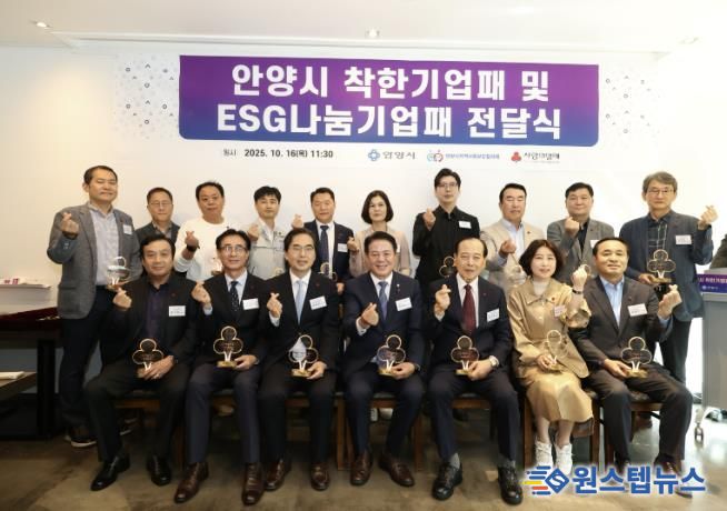 원스텝뉴스 이병희 기자 | 안양시는 16일 오전 11시 30분 관내 음식점에서 지역사회와 이웃을 위해 나눔을 실천한 14개 기업을 대상으로 간담회와 함께 ‘착한기업’ 및 ‘이에스지(ESG)나눔기업’ 감사패 전달식을 가졌다.