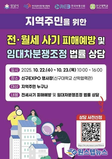 원스텝뉴스 이병희 기자 | 성남시는 오는 10월 22일부터 23일까지 양일간 오전 10시부터 오후 4시까지 신구대학교 신구EXPO 행사장에서 ‘전세사기 피해예방 상담 부스’를 운영한다.