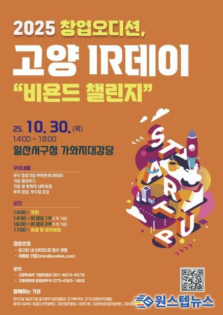 원스텝뉴스 이병희 기자 | 고양특례시는 오는 30일 일산서구청 가와지 대강당에서 창업오디션‘2025년 하반기 고양 아이알(IR)데이’를 개최한다고 밝혔다.