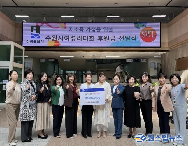 원스텝뉴스 이병희 기자 | 수원시여성리더회가 16일 수원시청 본관 1층에서 저소득가정을 위한 후원금 300만 원을 수원시에 전달했다. 후원금은 형편이 어려운 가정에 지원할 예정이다.