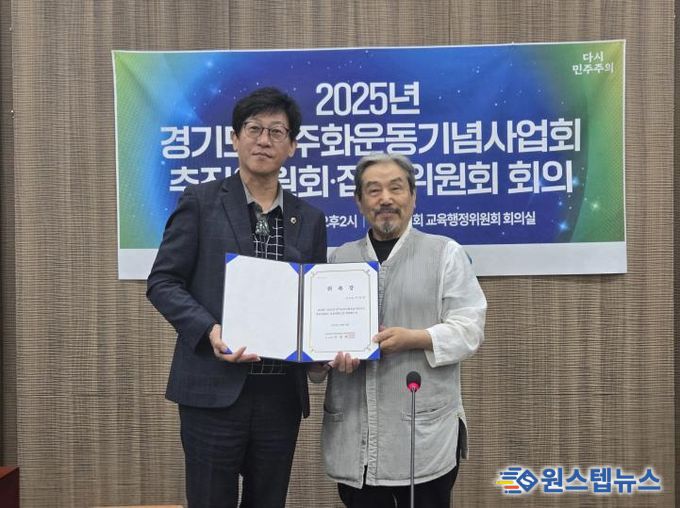 원스텝뉴스 이병희 기자 | 경기도의회 국중범 의원(더불어민주당, 성남4)은 16일 경기도의회 교육행정위원회 회의실에서 열린 '2025년 경기도 민주화운동 기념사업 추진현황 보고회'에 참석해 경기도 민주화운동 기념사업 자문위원으로 공식 위촉됐다.