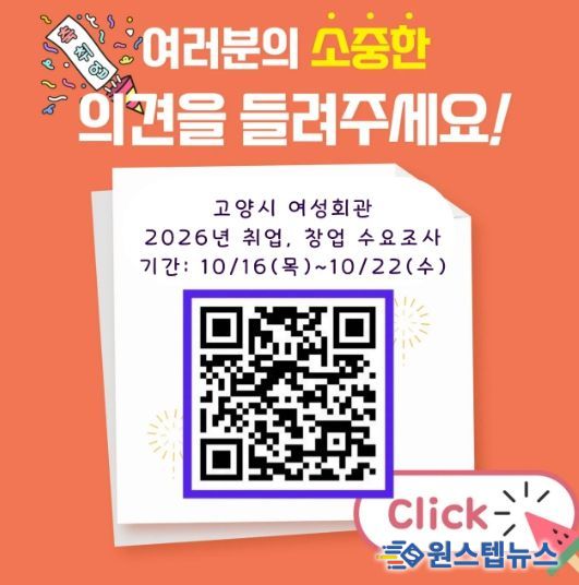 이번 조사는 고양시민을 대상으로 22일 오후 5시까지 진행되며, 온라인 설문을 통해 참여할 수 있다. 설문은 QR코드를 통해 접속 가능하며, 취업과 창업 분야에 대한 실질적인 수요를 파악하는 데 중점을 둔다.