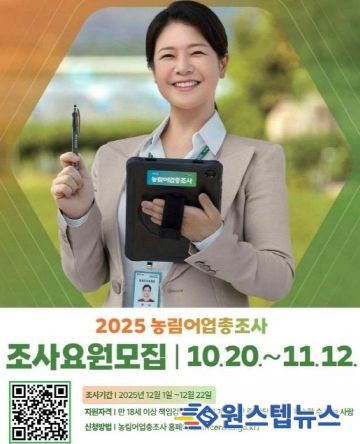 원스텝뉴스 이병희 기자 | 평택시가 10월 20일부터 11월 12일까지 ‘2025 농림어업총조사’ 조사요원을 모집한다.