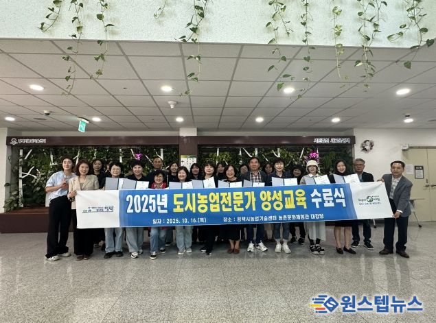 원스텝뉴스 이병희 기자 | 평택시는 지난 16일 평택시농업기술센터에서 ‘2025년 도시농업전문가 양성교육 과정 수료식’을 개최하고 22명의 전문교육 수료자를 배출했다.
