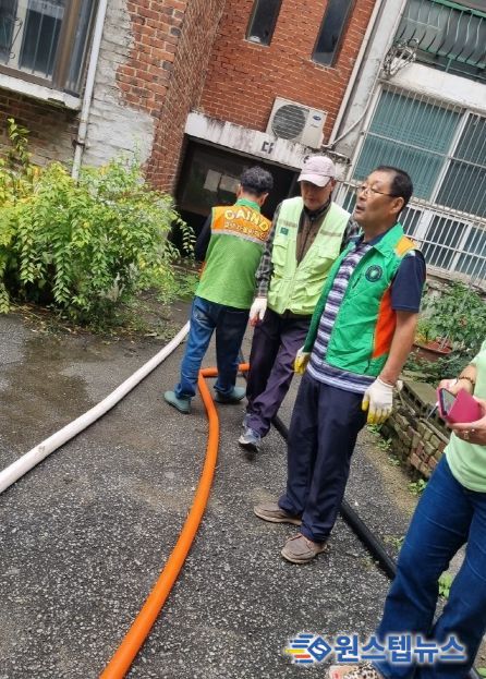자율방재단원은 배수펌프를 이용해 지하실 내 고인 물을 신속하게 제거하고, 추가 침수가 발생하지 않도록 주변 배수로와 맨홀 상태를 점검했다. 또한, 단원들은 현장 안전을 확보한 뒤 인근 주민들에게 상황을 안내하며 2차 피해 예방을 위한 조치도 병행했다.