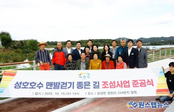 원스텝뉴스 이병희 기자 | 이천시가 10월 15일, 설성면 성호호수 맨발걷기 좋은길 조성사업 준공식을 했다. 이번 준공식에는 김경희 이천시장을 비롯한 박명서 이천시의회 의장, 허원 경기도의회 건설교통위원장과 설성면 기관·사회 단체장 및 지역 주민들이 참석했다.