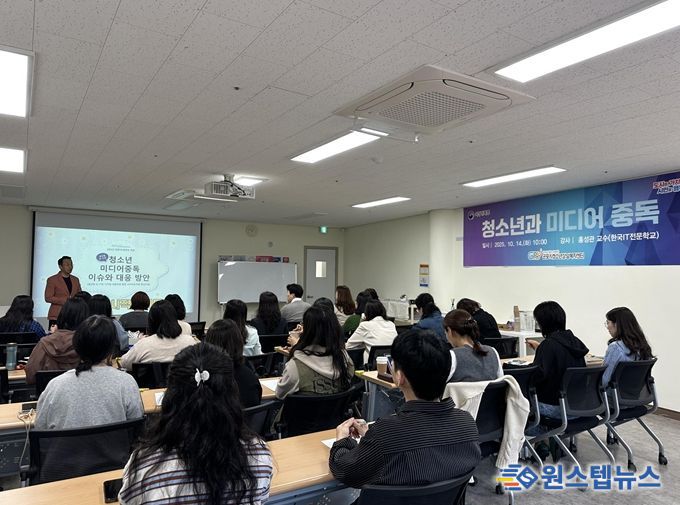 이날 강의는 최근 AI 기술의 급속한 발전으로 인해 나타나는 다양한 사회적 문제를 예방하기 위해서‘청소년과 미디어 중독’을 주제로 한국IT전문학교 홍성관 교수가 진행했다.