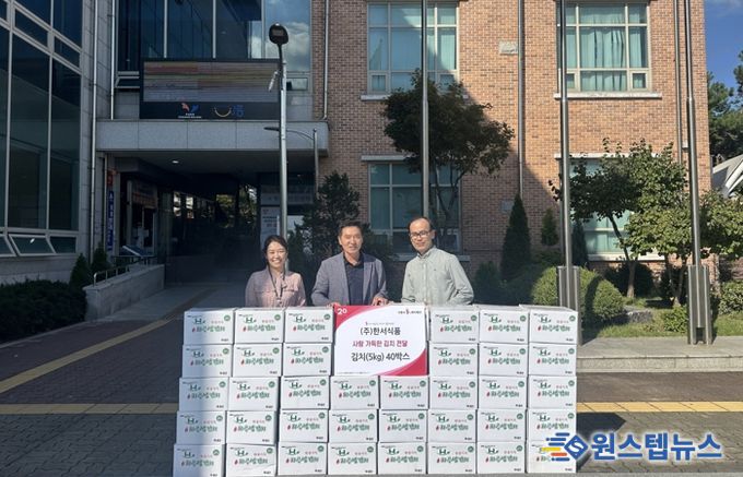 원스텝뉴스 이병희 기자 | 시흥시 정왕본동에 있는 ㈜한서식품은 지난 10월 16일 정왕본동 행정복지센터(동장 박래천)의 어려운 이웃을 위해 김치(5kg) 40상자를 기부했다.