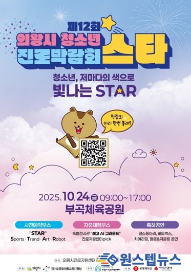 원스텝뉴스 이병희 기자 | 의왕시청소년재단 산하 의왕시진로지원센터는 ‘제12회 의왕시청소년진로박람회 스타(STAR)’를 오는 10월 24일 부곡체육공원에서 개최한다고 밝혔다.