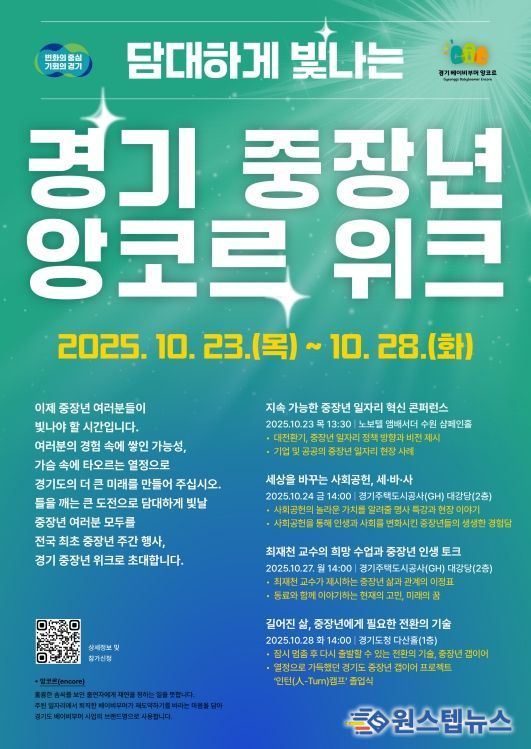 원스텝뉴스 이병희 기자 | 경기도가 중장년 세대의 도약과 성장을 지원하기 위해 23일부터 28일까지 6일간 ‘경기 중장년 앙코르 위크(week)’을 개최한다.