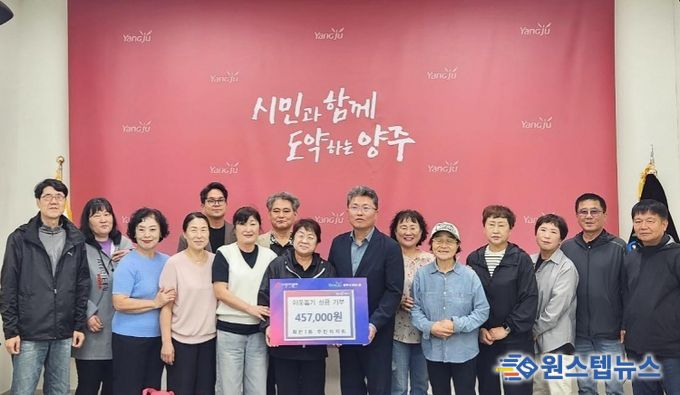 원스텝뉴스 이병희 기자 | 양주시 회천1동 주민자치회(회장 최태옥)가 최근 어려운 이웃을 돕기 위해 벼룩시장 운영 수익금 전액인 45만7천 원을 회천1동 행정복지센터에 기부했다.