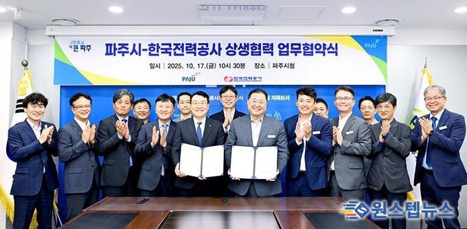 원스텝뉴스 이병희 기자 | 파주시와 한국전력공사는 지난 17일, 대규모 개발사업의 성공적인 추진과 안정적인 전력 공급을 위한 상생 협력 업무협약을 체결했다고 밝혔다.