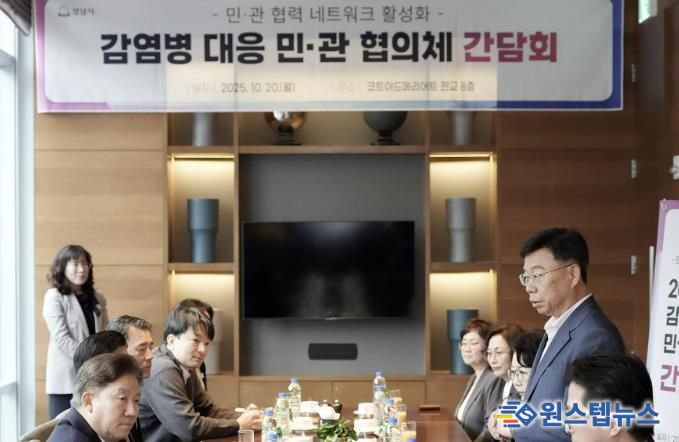 원스텝뉴스 이병희 기자 | 성남시는 10월 20일 오전 8시 코트야드 바이 메리어트 서울 판교(삼평동 소재)에서 ‘감염병 대응 민관 협의체 조찬 간담회’를 했다.