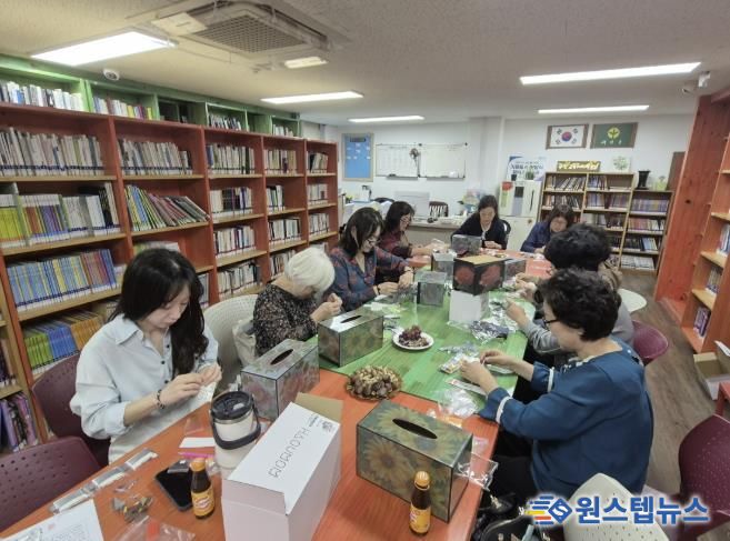 원스텝뉴스 이병희 기자 | 수원시 팔달구 우만2동 새마을문고는 지난 16일 문고 프로그램 일환으로 비즈 티슈케이스 만들기를 진행했다.