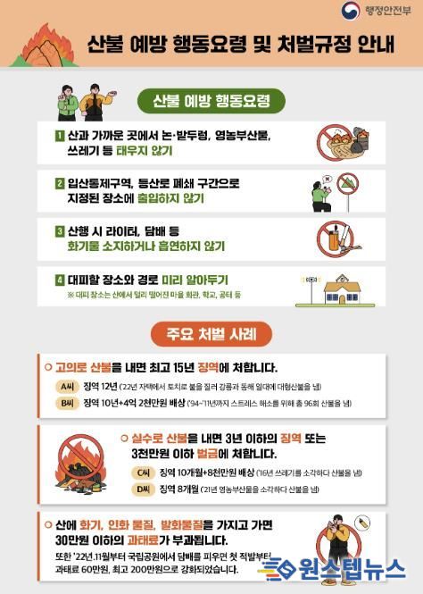 대책본부는 산불 발생 시 초기 대응력 강화를 위해 산불 진화차·등짐펌프 등 장비를 사전 점검하고, 산불 감시 초소 및 산림 인접 지역에 감시원과 진화대원을 배치하는 등 건조한 가을·겨울철 산불 예방에 총력을 기울이고 있다.