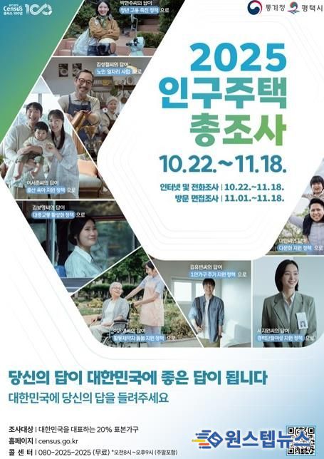 원스텝뉴스 이병희 기자 | 평택시와 통계청은 오는 22일부터 11월 18일까지 ‘2025년 인구주택총조사’를 실시한다.