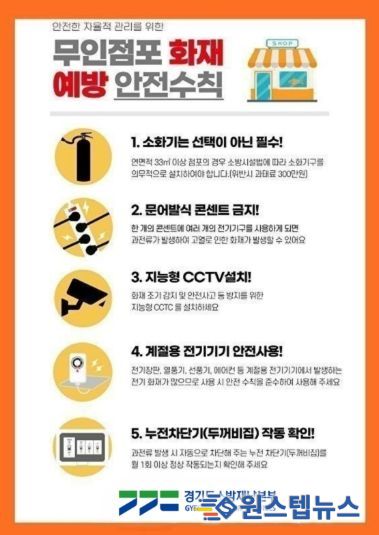 이번 대책은 최근 무인세탁소, 무인사진관 등 비대면 무인점포가 급증함에 따라 영업주의 화재안전관리 책임의식을 높이고, 부족한 소방 인프라를 보완하기 위한 조치다.
