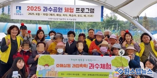 원스텝뉴스 이병희 기자 | 수원시 권선구 호매실동 지역사회보장협의체는 지난 20일, 저소득 홀몸 어르신들을 모시고 과수 체험(사과 따기)에 나섰다. 이번 행사는 관내 홀몸 어르신들의 우울감 등을 예방하고 사회적 관계망을 만들기 위해 진행됐다.