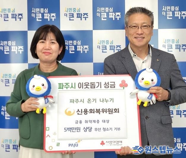 원스텝뉴스 이병희 기자 | 파주시는 지난 21일 신용회복위원회 인천·경기북부지역본부에서 금융 취약계층을 위한 500만 원 상당의 무선 청소기를 전달받았다고 밝혔다.