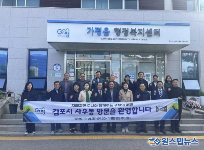 원스텝뉴스 이병희 기자 | 가평군 가평읍 행정복지센터는 21일 자매결연 도시인 김포시 사우동 행정복지센터 방문단을 맞아 양 지역 간 교류와 상생 발전을 위한 간담회를 열었다. 이번 만남은 2023년 9월 가평군과 김포시가 자매결연 협약을 한 이후, 상호 우호 증진과 협력 강화를 위해 마련했다.
