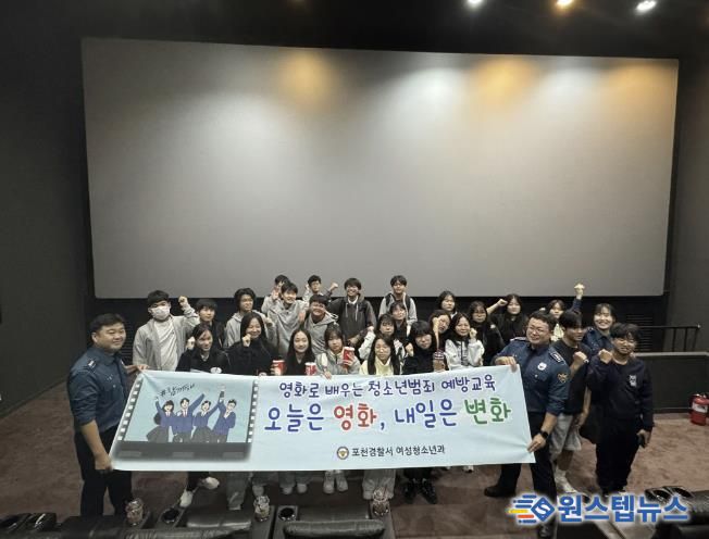 원스텝뉴스 이병희 기자 | 포천시 청소년재단 포천청소년문화의집 청소년방과후아카데미는 지난 21일 씨지브이(CGV) 포천에서 포천경찰서 여성청소년과와 함께 청소년 대상 범죄예방교육 및 영화관람 활동을 실시했다.
