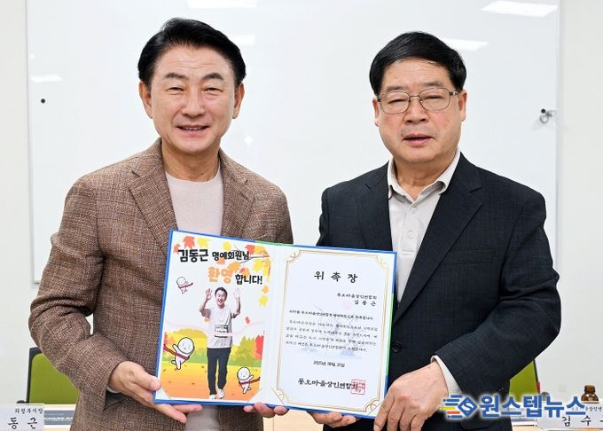 이날 김동근 시장은 동오마을상인연합회의 명예상인회원으로 위촉돼 상인들과 소통하며, 지역 축제인 ‘동오마실페스타’ 준비 과정에도 힘을 보탰다.