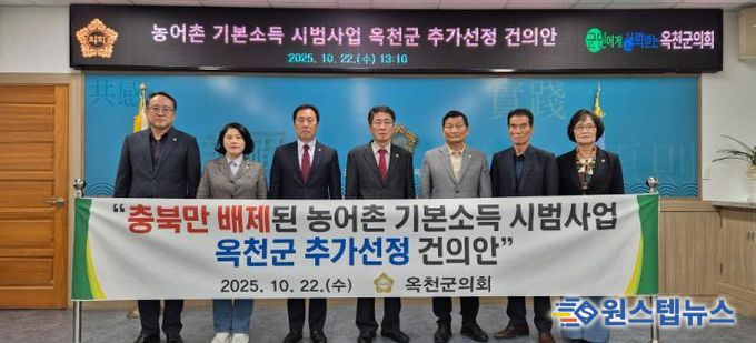 원스텝뉴스 이병희 기자 | 옥천군의회는 지난 10월 22일 의회 간담회실에서 추복성 의원이 대표발의한'농어촌 기본소득 시범사업'옥천군 추가선정 촉구 건의문을 채택했다고 밝혔다.