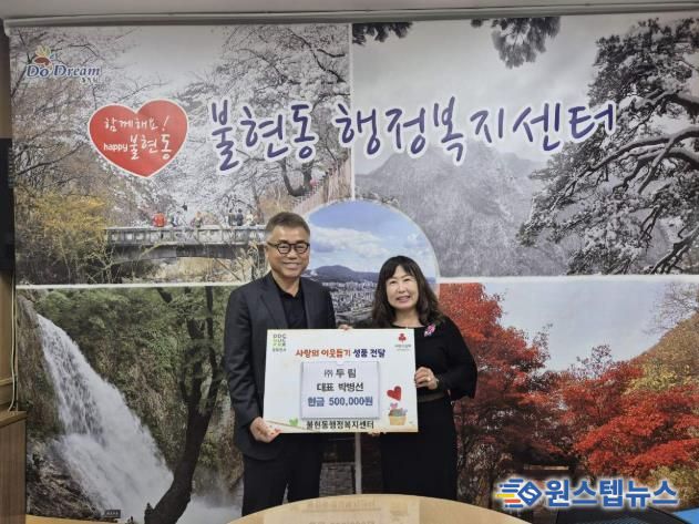원스텝뉴스 이병희 기자 | ㈜두림은 지난 23일 불현동 행정복지센터를 방문해 소외계층을 돕기 위한 성금 50만 원을 기탁하며 연말 기부 릴레이에 동참했다.