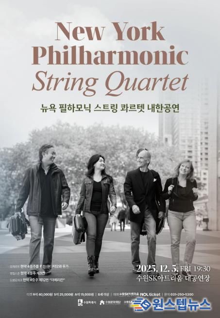 원스텝뉴스 천규영 기자 | 수원문화재단은 오는 12월 5일 금요일 오후 7시 30분, 수원SK아트리움 대공연장에서 ‘뉴욕 필하모닉 스트링 콰르텟 내한공연’을 개최한다.