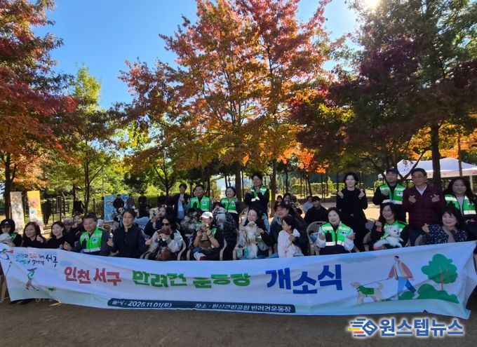 원스텝뉴스 이병희 기자 | 인천 서구의회 서구반려동물정책연구회(대표의원 홍순서)는 지난 1일 서구청 축산동물팀과 공동으로 원신근린공원에서 서구 최초 반려견 놀이터 개소식을 개최했다.