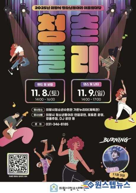 원스텝뉴스 천규영 기자 | 의왕시청소년재단 산하 의왕시청소년수련관은 오는 11월 8일부터 9일까지 이틀간, 청소년 및 지역주민을 대상으로 의왕시 청소년동아리 어울림마당 '청춘플리'를 개최한다.