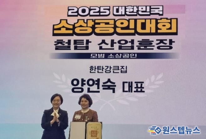 원스텝뉴스 이병희 기자 | 연천군 소상공인연합회 양연숙 회장이 지난 10월 31일 고양시 일산 킨텍스에서 열린 중소벤처기업부 주최 ‘2025년 대한민국 소상공인대회’에서 소상공인 육성 공로를 인정받아 철탑산업훈장을 수상했다.