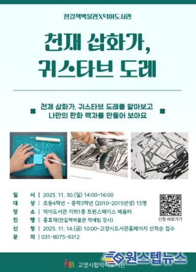 원스텝뉴스 천규영 기자 | 고양특례시 덕이도서관이 오는 11월 30일 오후 2시부터 4시까지 한길책박물관과 협력해 ‘천재 삽화가, 귀스타브 도레’ 프로그램을 운영한다.