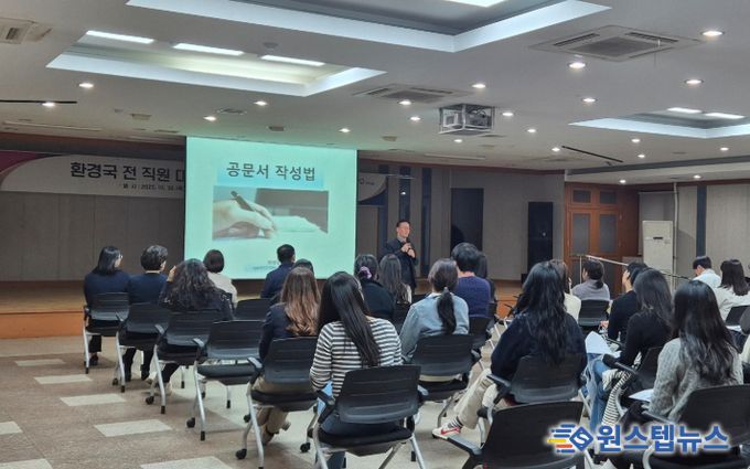 이번 교육은 공문서 작성 및 민원 응대 요령, 강의 기법 등 공직자로서 필수적인 직무역량을 강화하기 위한 것으로, 환경국 전 직원을 대상으로 마련된 첫 통합 교육이다.