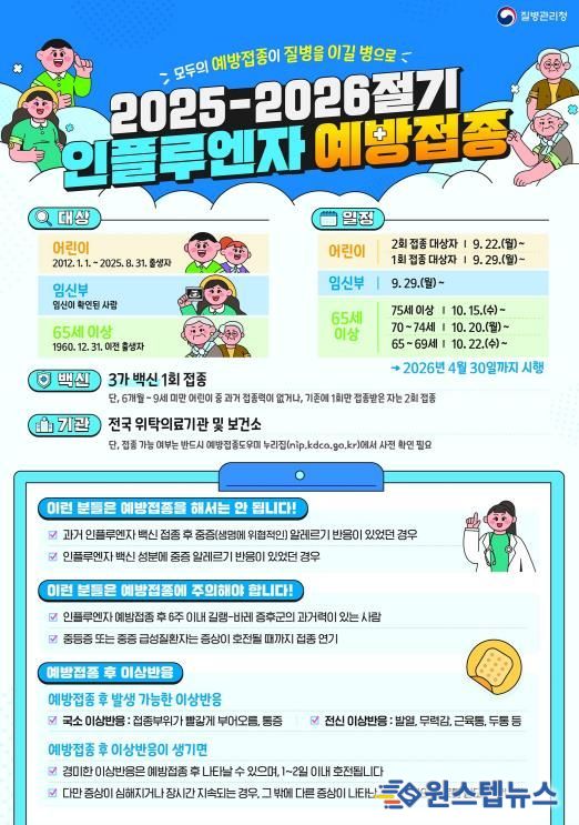 유영철 보건건강국장은 “인플루엔자 유행이 예년보다 빠르게 시작된 상황에서 예방접종은 매우 효과적인 방어 수단”이라며 “아직 백신을 접종하지 않은 어르신, 어린이, 임신부는 본격 유행 전 예방접종을 완료해 건강한 겨울을 준비하시길 바란다”고 말했다.