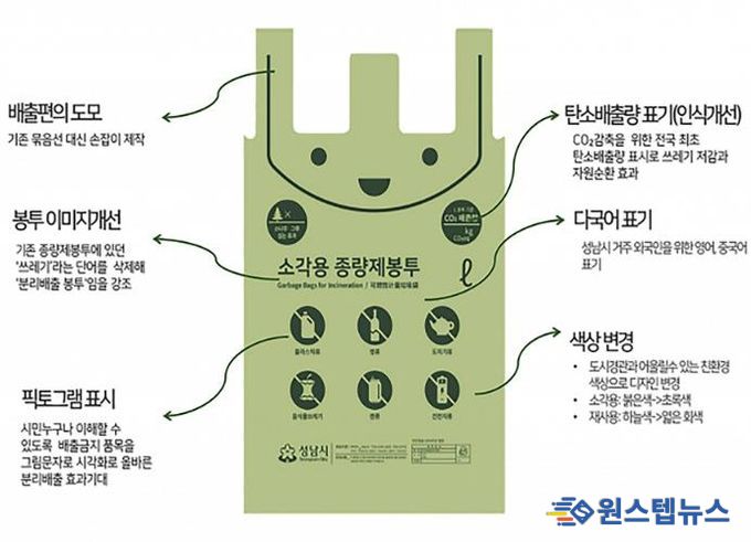 원스텝뉴스 이병희 기자 | 성남시는 서울 광진구의 요청으로 종량제봉투 디자인권을 무상으로 제공하기로 했다고 4일 밝혔다.