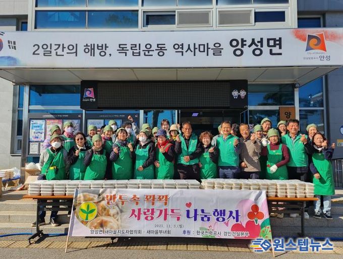 이번 행사는 한국전력공사 경인건설본부의 후원으로 진행됐으며, 양성면 새마을지도자협의회와 부녀회는 앞으로도 지속적인 나눔 활동을 통해 지역사회에 사랑과 희망을 전할 계획이다.