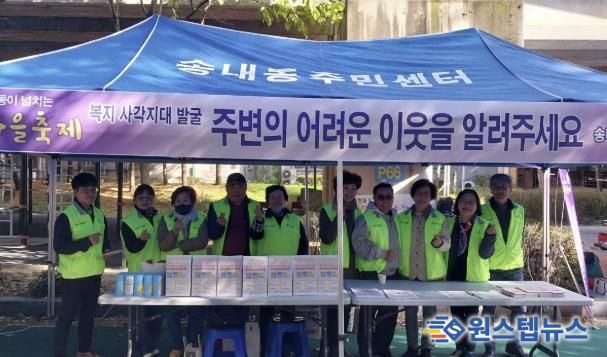 원스텝뉴스 이병희 기자 | 동두천시 송내동 행정복지센터와 송내동 지역사회보장협의체는 지난 2일 송내마을축제가 열린 메타세쿼이아길에서 복지 사각지대 발굴을 위한 거리 홍보 캠페인을 진행했다.