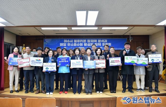 원스텝뉴스 이병희 기자 | 여수시의회 의원연구단체 ‘기후변화대응 탄소중립 연구회’(대표의원 정신출)가 11월 3일 전남대학교 산학연구관에서 ‘여수시 블루카본 잠재력 분석과 해양 탄소흡수원 활성화 정책 토론회’를 개최했다고 밝혔다.