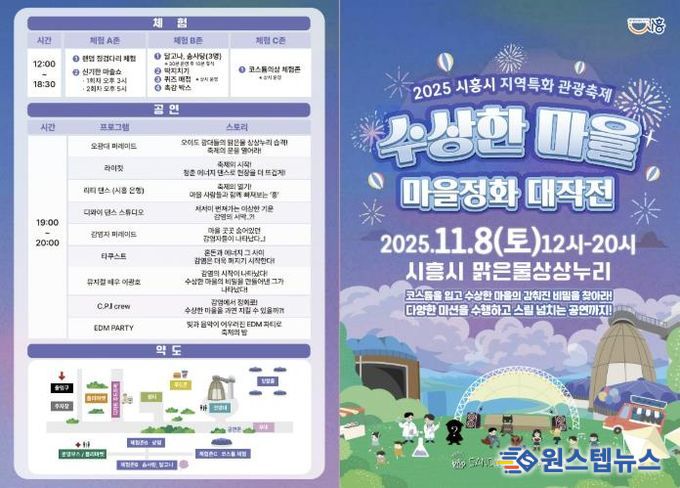 원스텝뉴스 이병희 기자 | 시흥시는 2025년 시흥시 지역특화 관광축제 지원사업 선정 축제인 ‘수상한 마을 마을정화대작전’을 오는 11월 8일 정왕동 맑은물상상누리 일원에서 개최한다. 이번 축제는 시흥시 청년예술연합회가 주관한다.