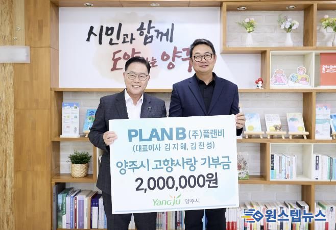 원스텝뉴스 이병희 기자 | ㈜플랜비가 5일 오전 양주시에 지역 발전을 위해 고향사랑기부금 200만 원을 전달했다.