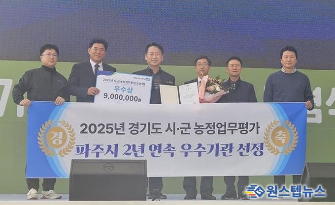 원스텝뉴스 이병희 기자 | 파주시는 지난 7일 수원시 국립농업박물관에서 열린 ‘제30회 경기도 농업인의 날 기념식’에서 녩년 경기도 시군 농정업무평가’2년 연속 우수기관으로 선정됐다고 밝혔다.