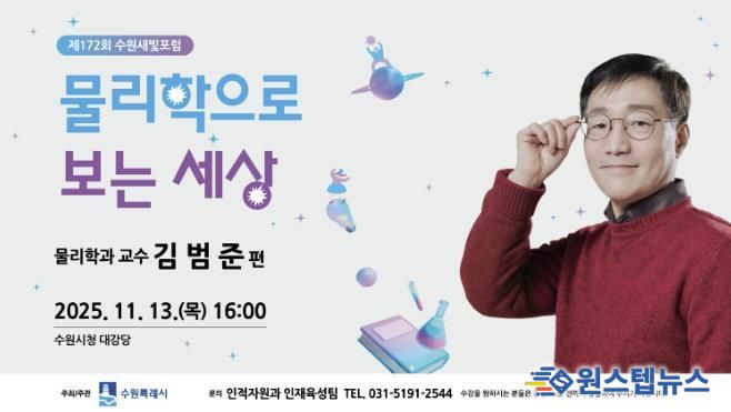 원스텝뉴스 이병희 기자 | 물리학자 김범준 성균관대 물리학과 교수가 11월 13일 오후 4시 시청 대강당에서 열리는 제172회 수원새빛포럼 강사로 나선다.