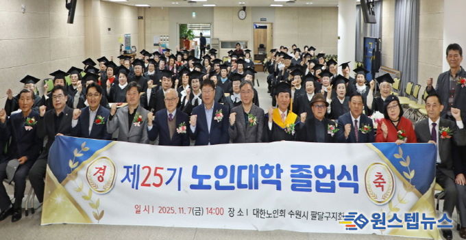 류병철 노인대학장은 회고사를 통해 “25기 노인대학생들의 열정과 도움으로 학사 운영을 잘 마치게 됐다”며 감사의 마음을 전했고, 이병학 대한노인회 팔달구지회장은 “졸업생 여러분들 항상 건강하시고 배움을 놓지 않는 노년이 되시라”며 졸업생 어르신들을 격려했다.