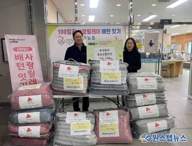 원스텝뉴스 이병희 기자 | 의정부시 가능동주민센터는 11월 7일 ㈜경신산업안전이 ‘100일간 사랑릴레이 배턴 잇기’에 동참해 이불 15채(총 100만 원 상당)를 기부했다고 밝혔다.