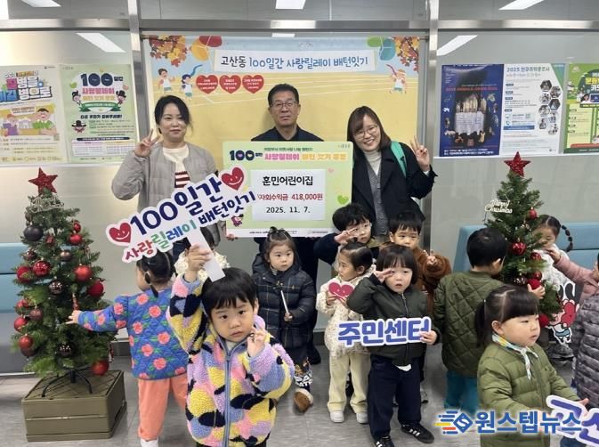 원스텝뉴스 이병희 기자 | 의정부시 고산동주민센터는 11월 7일 훈민어린이집이 바자회를 통해 모은 수익금 40여만 원을 기탁하며 ‘100일간 사랑릴레이 배턴 잇기’에 동참했다고 밝혔다.