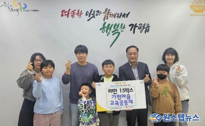 원스텝뉴스 이병희 기자 | 가평군 가평마을교육공동체는 최근 가평읍 행정복지센터를 방문해 이웃돕기 성품으로 라면 15박스를 전달했다. 이번 성품은 ‘가마공 벼룩시장’에서 아이들이 팀을 이루어 직접 물건을 준비하고 판매에 참여해 얻은 수익금으로 준비한 것이다.