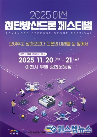 이천시는 오는 11월 20일부터 21일까지 이틀간, 부발읍 종합운동장(무촌리 52) 일원에서 ‘2025 이천 첨단방산드론 페스티벌’을 개최한다. 개막식은 11월 20일 14:00로 드론의 미래를 보는 첫걸음을 내딛을 예정이다.
