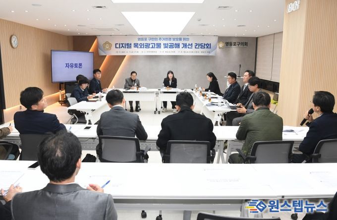원스텝뉴스 이병희 기자 | 영등포구의회 양송이 행정위원장과 신흥식 의원은 지난 7일 오후 5시, 영등포구의회 3층 다목적회의실에서 올림픽대로변 대형 디지털 옥외광고물로 인해 지속적인 빛공해 피해를 호소하는 주민들과 관계 기관이 함께하는 ‘디지털 옥외광고물 빛공해 개선 간담회’를 개최했다.